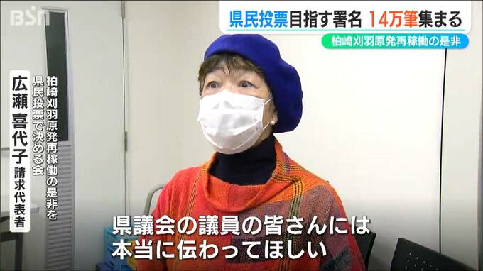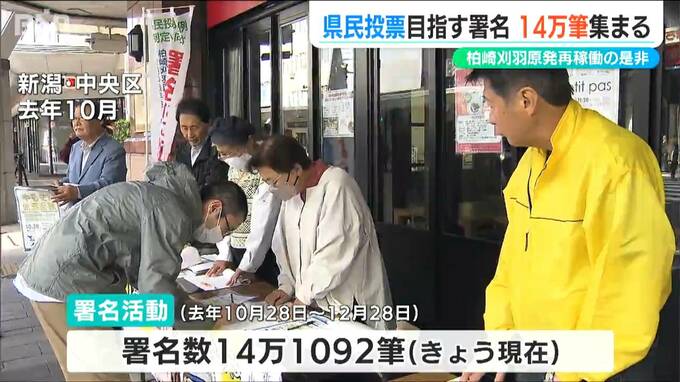 東京電力・柏崎刈羽原子力発電所の再稼働の是非を問う『県民投票』の実施を目指す署名がおよそ14万筆集まったと、市民団体が発表しました。