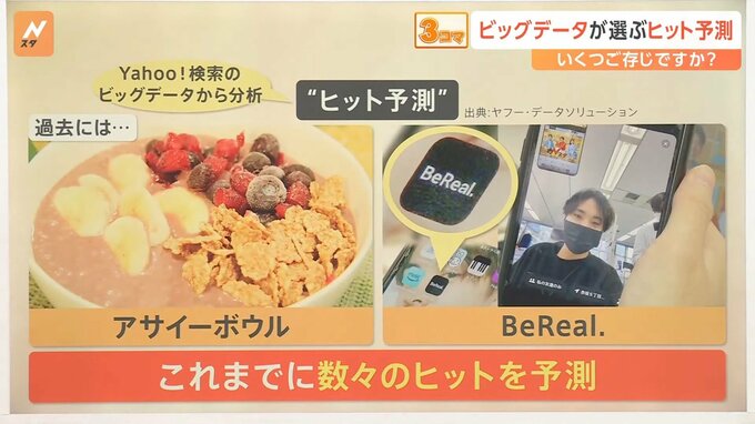 Yahoo!検索のビッグデータから分析し、ヒット予測というものも発表されています。過去にはアサイーボウルやBeReal.など数々のヒットを予測してきました。