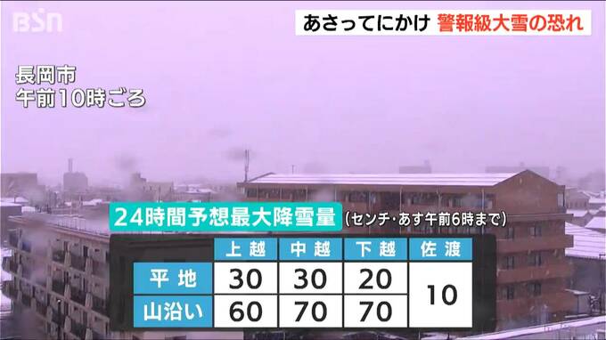 新潟県内では、あさって10日にかけて警報級の大雪となる恐れがあり、交通障害に注意・警戒が必要です。