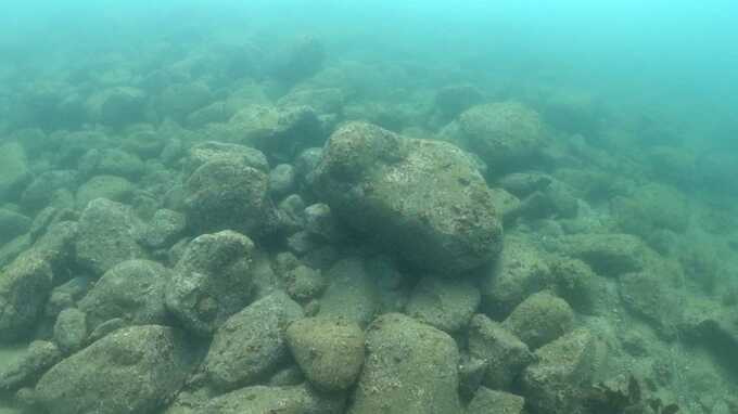 RKB今林隆史「見渡す限り一面ゴツゴツとした岩肌が広がっていて、生物の姿はほとんど確認できません。海藻はほとんど生えておらず、岩と岩の間には長いとげを持ったウニが潜んでいます」