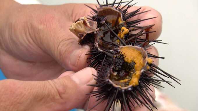 磯焼けは潜水漁が盛んな宗像市でも起きています。アワビやサザエが減少し、ウニが増えていました。このウニ、中を見せてもらうと……