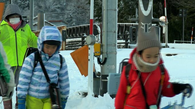 けさ(8日)の岡山県真庭市蒜山では、万全の防寒対策で通学する小学生の姿が見られました。