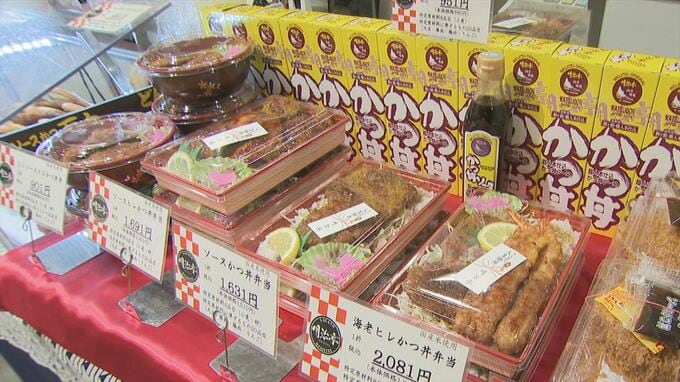 岡島の会場には北は北海道、南は熊本まで17店が軒を連ね、海鮮弁当やソースかつ丼、それにスイートポテトなど名物グルメが勢ぞろいしています。