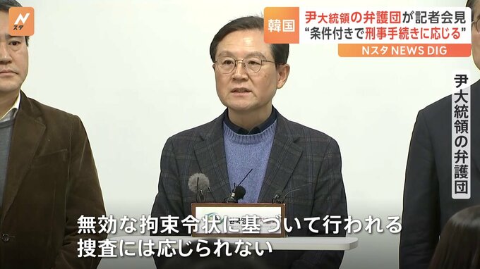 韓国の尹錫悦大統領の弁護団が、尹大統領に再び拘束令状が出たことを受け、条件付きで刑事手続きに応じる意向を表明しました。尹大統領の弁護団「無効な拘束令状に基づいて行われる捜査には応じられない」警察など…