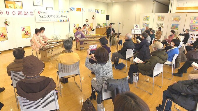 33年にわたる取り組みはきょうで900回を迎えたことから記念コンサートが開かれ、県内の邦楽アンサンブル銀河による琴と尺八の演奏が披露されました。訪れた人たちは春を思わせる美しい調べに聞き入っていました。