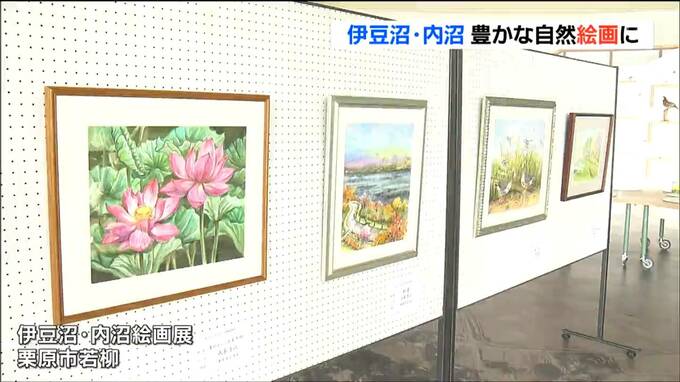 この展示会は、絵画を通して伊豆沼と内沼の豊かな自然を多くの人たちに知ってもらおうと開かれていて、今年で30回目を数えます。会場には、栗原市と登米市に住む絵画の愛好家14人が描いた水彩画や油絵などの作品24点が展示されています。