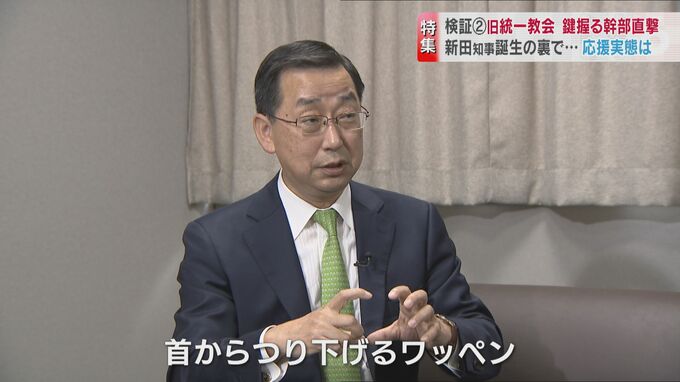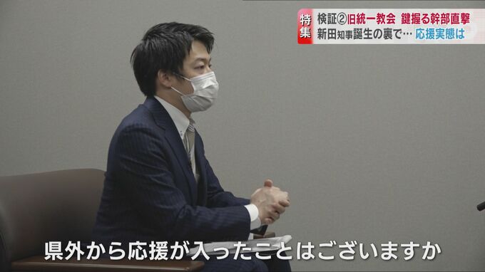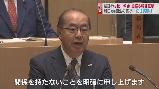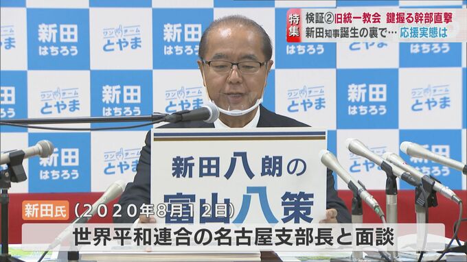 旧統一教会と富山政界を検証するシリーズ第2弾。28日閉会した県議会では新田知事と旧統一教会の関係を問う質問が与野党から相次ぎました。知事選で旧統一教会はどのように支援をしたのか。新田知事を応援した関連団体の幹部を直撃しました。