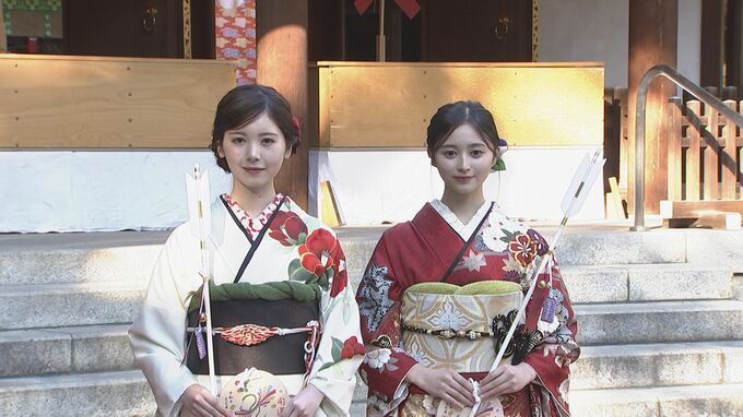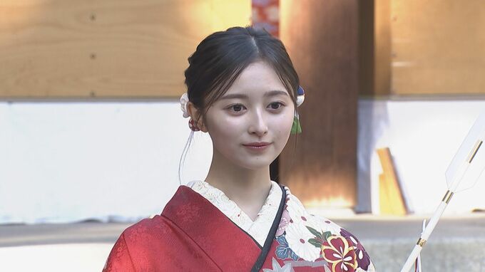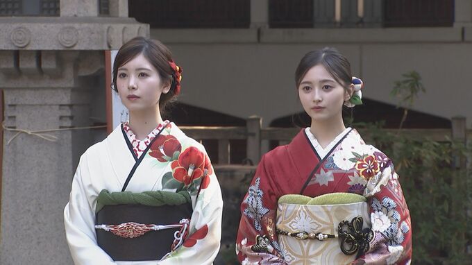 乃木坂46の4期生・筒井あやめさんと、5期生の井上和さんが 東京・乃木神社で行われた「2025年 乃木坂46 新成人お披露目会」に紅白の振り袖姿で出席しました。
