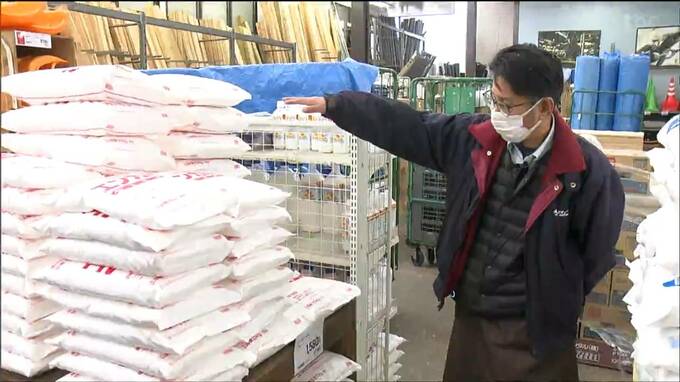 仙台市太白区のホームセンターでは、雪対策の商品について在庫や商品の種類を尋ねる問い合わせが、8日から寄せられているといいます。9日も大きな袋に入った融雪剤を買い求める客の姿が見られました。