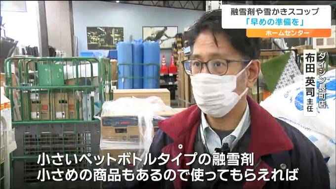 この店では、ペットボトルなどに入っている持ち運びが簡単な使い切りサイズの融雪剤も人気だということです。