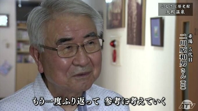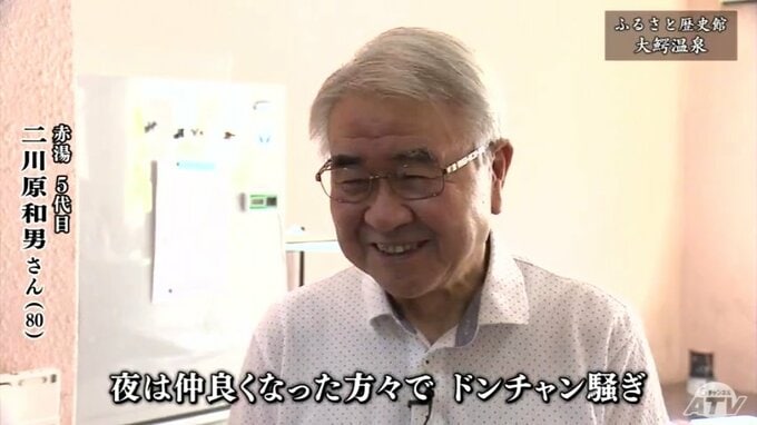 町には30軒以上の宿が立ち並び、活況を呈しました。その一つ、赤湯(あかゆ)です。明治初期には営業していたと記録が残されています。赤湯はかつて、湯治客が費用を抑えながら長く滞在できるように、食事は提供せずに自炊してもらう「客舎(きゃくしゃ)」として営業していました。こうした客舎ならではの光景を5代目・二川原和男(にがわら・かずお)さん80歳はこう、ふり返ります。