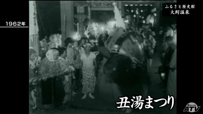丑の日に風呂へはいると一年間、無病息災で過ごせると言い伝えられていて、大勢の湯治客が訪れました。祈祷式は一風変わっていて、牛の背中に乗った大日如来を湯に浸けてから御神酒のかわりに牛乳を入れました。そして、入浴が始まるのは午前2時の丑の刻です。まつりでは、流し踊りを始め様々な催しが企画され、町全体が熱気に包まれました。
