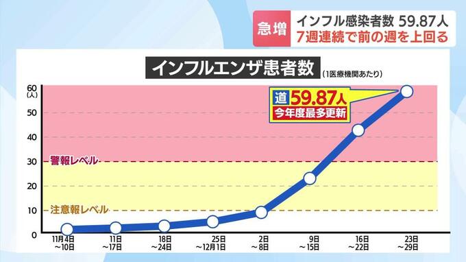 全国の一医療機関あたりのインフルエンザの患者数が過去最多を記録する中、北海道内でも感染拡大が続いています。