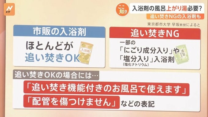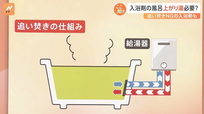 では、こんな場合はどうでしょう。家族の入浴時間がバラバラで入浴剤入りのお湯を毎日追い焚きしている場合は要注意なのだそうです。
