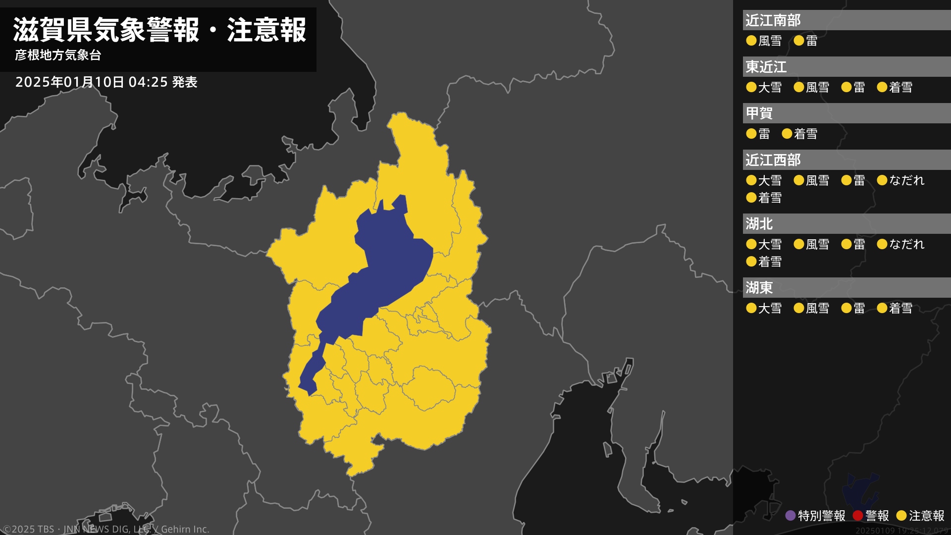 気象台は、午前4時25分に、なだれ注意報を高島市に発表しました。