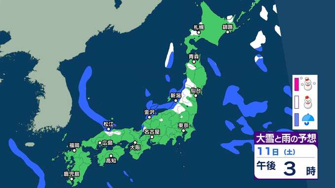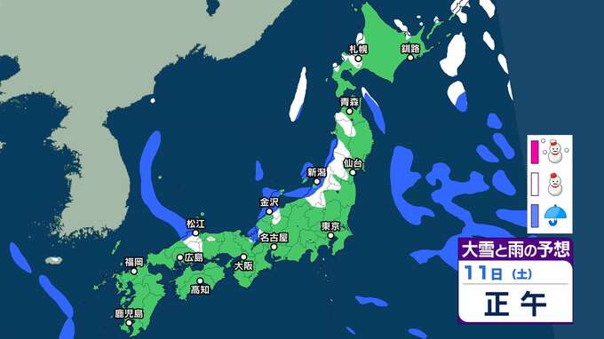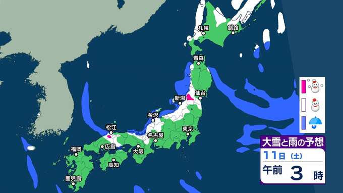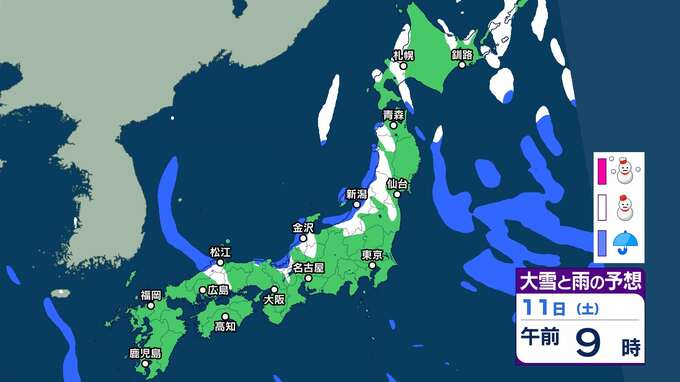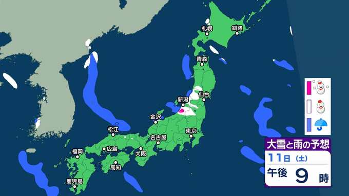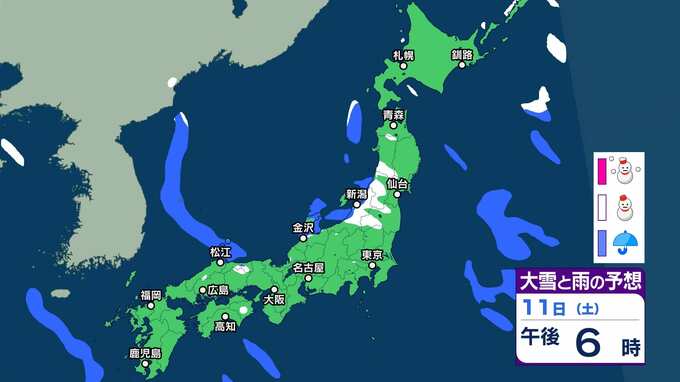 【大雪情報 10日午前5時半更新】あす11日までに山沿いで新潟60㎝、富山50㎝、石川30㎝、福井25㎝【大雪と雨のシミュレーション 13日まで】上空にマイナス30℃以下の強い寒気 チューリップテレビ 2025年1月10日(金) 05:35 国内 天気 11日の大雪と雨のシミュレーション