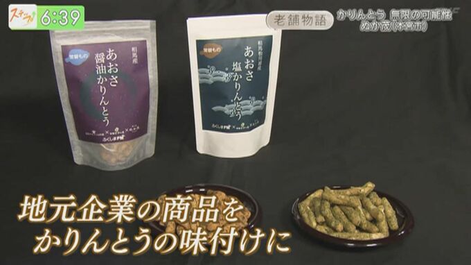 --糠澤正之 社長「かりんとうの素材は、家庭にでもある小麦粉、油、砂糖など。手ごろに揃えられ、原価も抑えられる。味付けによっては、地元の味噌屋さんや醤油屋さんといろいろなコラボができたり、そういう味付けができるんじゃないかと思ったのがきっかけですね。」