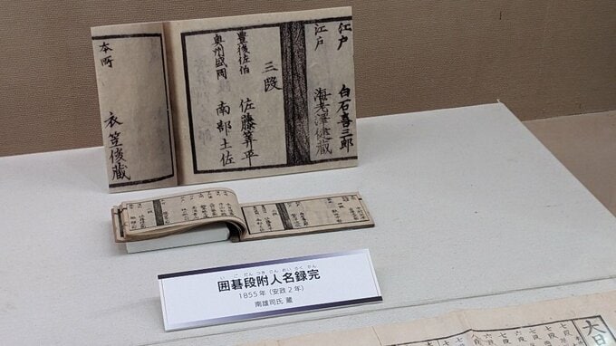 1855年には幕府の御碁所が段位を認定した人名を記した「囲碁段附人名録完」という書物に「三段 南部土佐」という南部藩士の名前が登場し、岩手の囲碁が盛んになり、技術も向上していったことが想像されます。