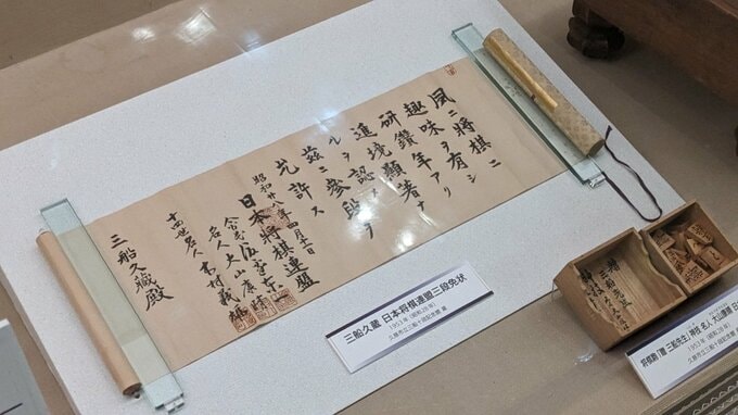 また将棋では、将棋を愛したことでも知られる久慈市出身の柔道家、三船久蔵が日本将棋連盟の三段に認定された時の免状なども展示されています。