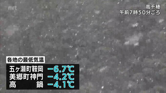 宮崎県内にはこの冬一番の強い寒気が流れ込んだ影響で、各地の最低気温は、ほとんどの地点で氷点下となりました。10日朝の各地の最低気温は、五ヶ瀬町鞍岡で-6.7℃、美郷町神門で-4.2℃などと県内のほとんどの地…