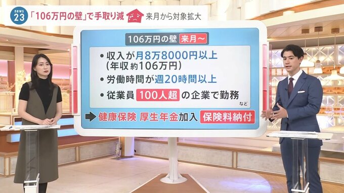 10月から106万円の壁の条件が変わるということで、影響を受ける人が激増すると言われているんですよね。