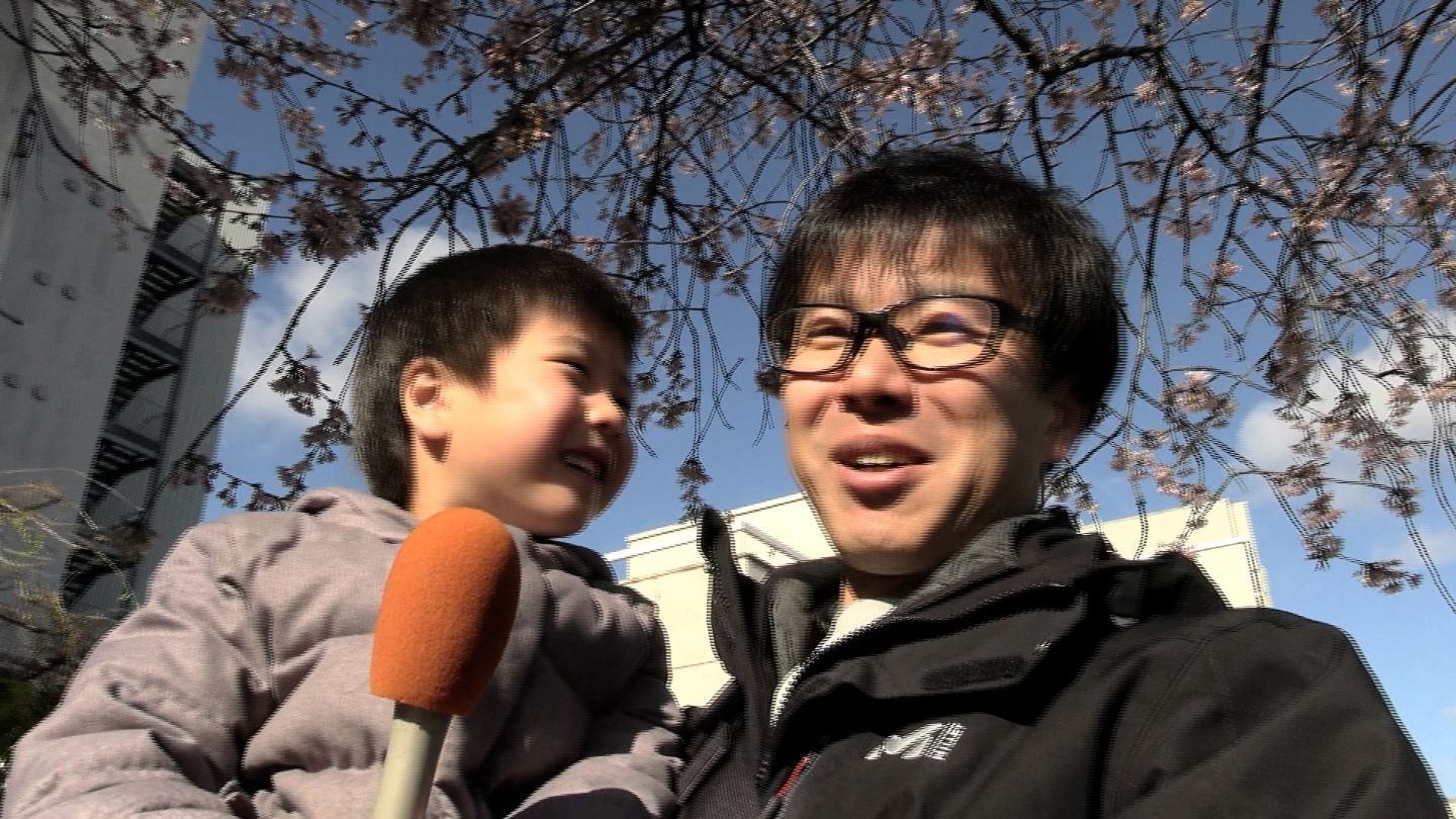 「びっくりしました。こんな時期にサクラが見られると思ってなかったので、こういう時に見るサクラもいいかなと思います」