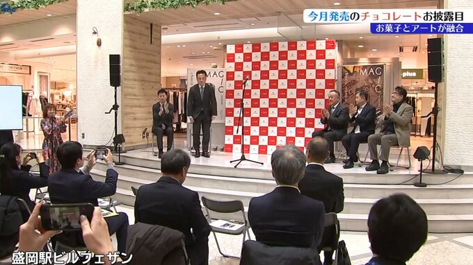 岩手県二戸市が本社の南部せんべいの製造メーカーと、障害のあるアーティスト作品を発信する企業が協力して発売するチョコレートが10日お披露目されました。