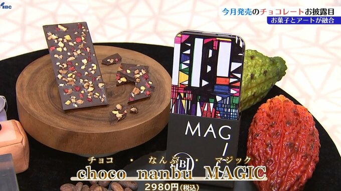 この商品「choconanbu MAGIC」は、酸味のあるフルーティーなチョコレートに、砕いた南部せんべいとフルーツがトッピングされたお菓子です。