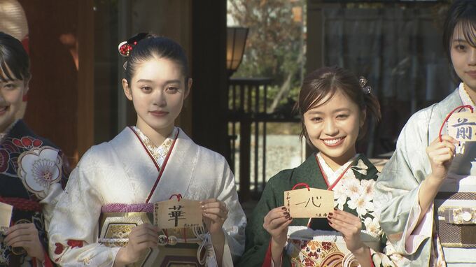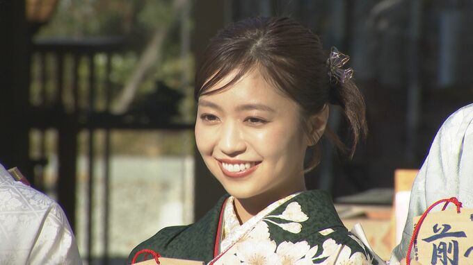 髙石さんは「華」と書いた絵馬を持ちながら、“ちょうど1年前、この場で「種」を蒔いたその種が芽吹く1年になればいいなと思って「芽」と書いた。その芽が「2025年は華咲きますように」という気持ちを込めて華と書かせていただいた”と説明し、笑顔を見せました。