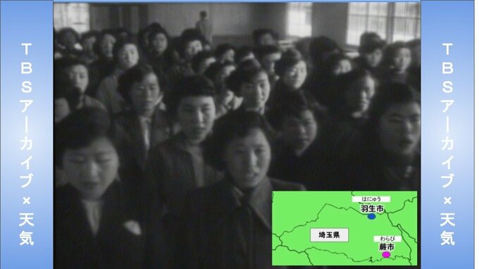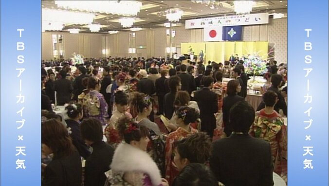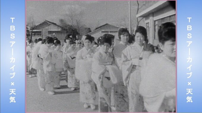 そもそも成人式の始まりは1946年(昭和21年)、埼玉県蕨町(わらびまち/現・蕨市)で行われた「第1回青年祭」がルーツだそうです。この当時、国全体が敗戦による虚脱感で明日への希望が見出せずにいた中、次代を担う若者たちを勇気づけ励まそうと「青年祭」が企画されたということです。その後1948年(昭和23年)には国や県からもこの青年祭に関心が寄せられ、1月15日が「成人の日」となり、全国へ広がりました。TBSのアーカイブに残されている一番古い映像は1954年(昭和29年)の埼玉県の羽生町(羽生市)の映像。この当時は着物姿の人がいませんでした。