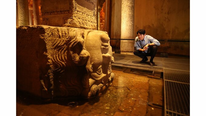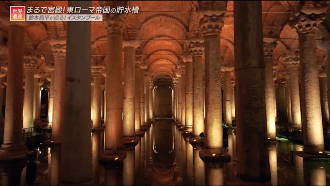 まずは鈴木さんが訪れた「地下宮殿」。ここは6世紀に建造された巨大な貯水槽の跡で、今はほとんど水がなく、歩いて見て回ることが出来ます。8万トンもの水を蓄えることが出来た広大な地下空間に300本以上もの石柱が建ち並んでいることから、「地下宮殿」と呼ばれるようになりました。