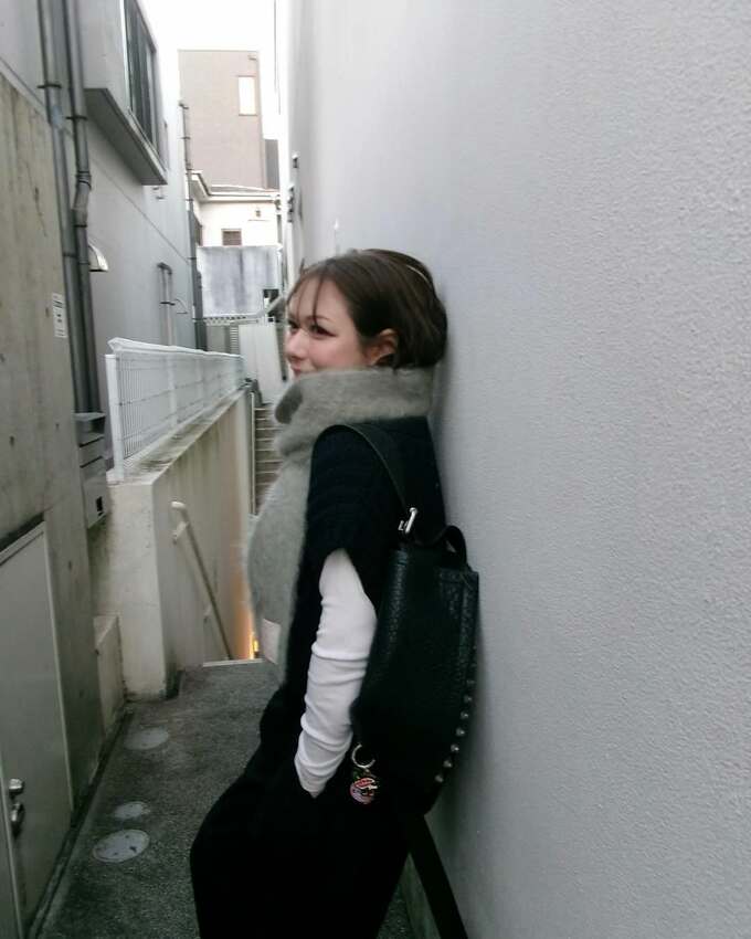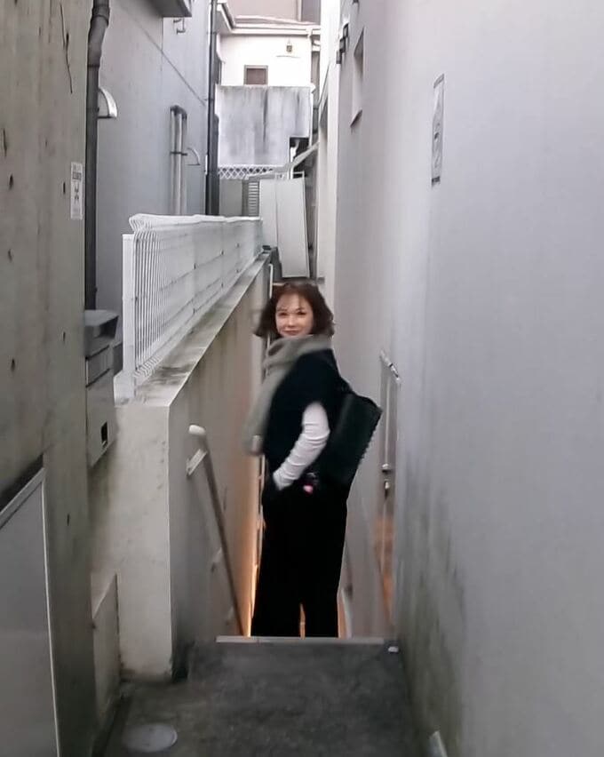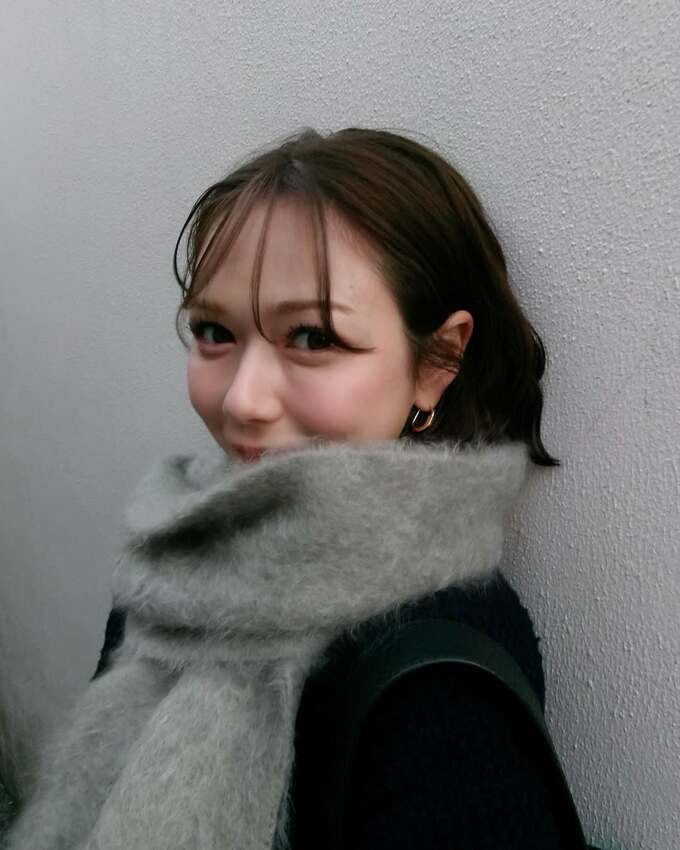 「マフラーしてアウター忘れるのまじで頭隠して尻隠さずみたいな世界観」「恥ずかしかったー!」という村重さんは、細い階段を駆け下りざまに照れ隠しに一瞬振り向く動画を掲載。