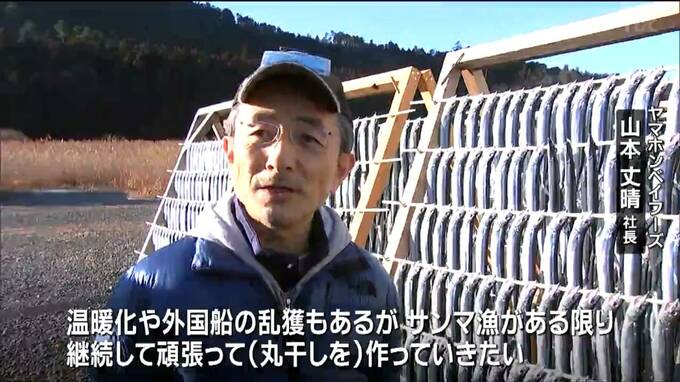 ヤマホンベイフーズ山本丈晴社長「温暖化や外国船の乱獲もあるが、サンマ漁がある限りは、継続して頑張って(丸干しを)作っていきたい」