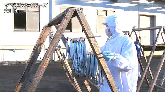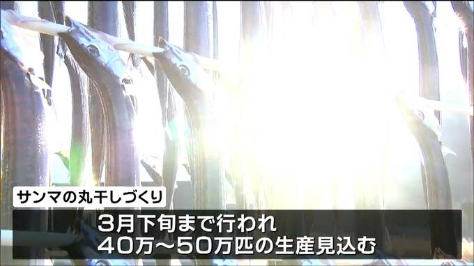 女川の冬の風物詩、サンマの丸干しづくりは3月下旬まで行われ、40万から50万匹の生産を見込んでいます。