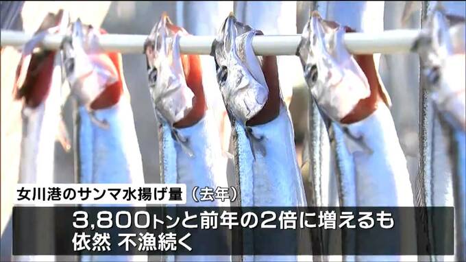 昨年の女川港でのサンマ水揚げ量はおよそ3800トンで、前の年の2倍に増えたものの、依然として不漁が続いています。