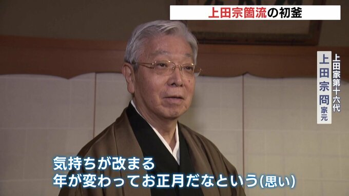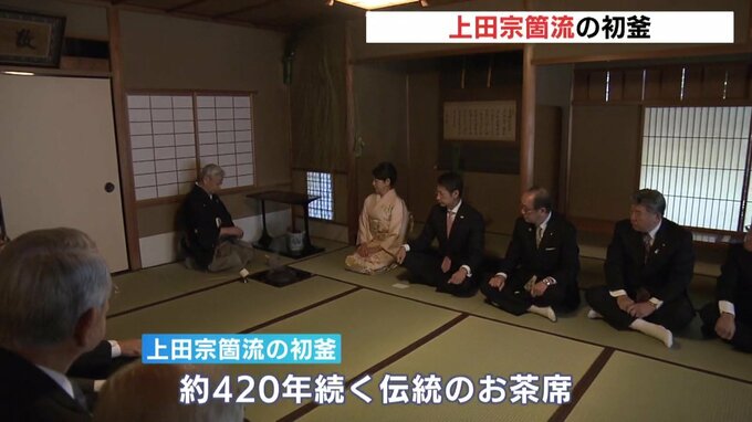 新年を祝い健康を願う上田宗箇流の初釜が行われ、出席者にお茶が振る舞われました。