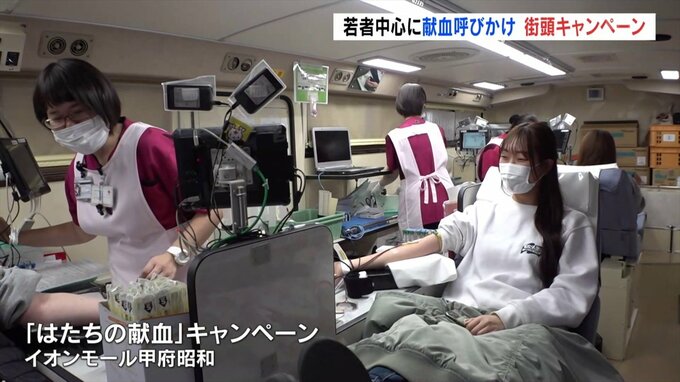 血液センターでは、1月1日から2月28日まで「はたちの献血キャンペーン」を展開していて、イオンモール甲府昭和では、2月9日と23日にも献血ブースが設けられます。