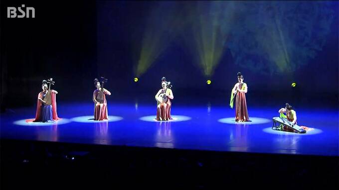 シルクロードを通る中国北西部・甘粛省の歌舞劇団が、世界遺産のある敦煌をテーマに、琵琶などの民族楽器を使いながら幻想的な音色を響かせました。