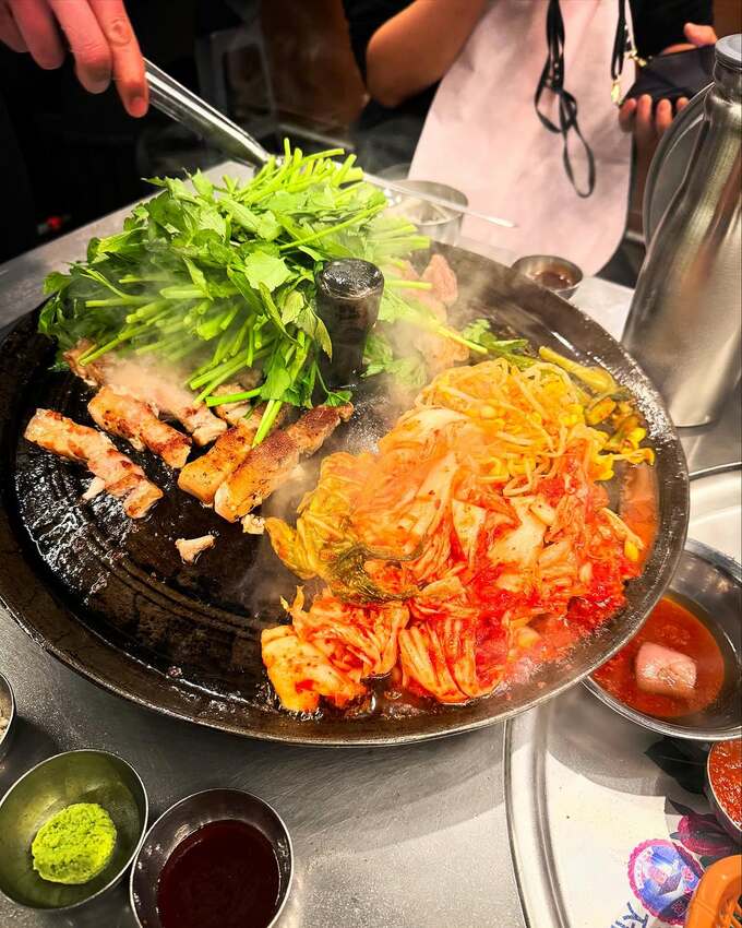 そして、インスタグラムのストーリー機能で「人生初のせりサムギョプサル!」「めーーーっちゃ美味しかった!!!」「せりと玉ねぎ永遠に食べれます。」と、食事を楽しんだことを明かしています。