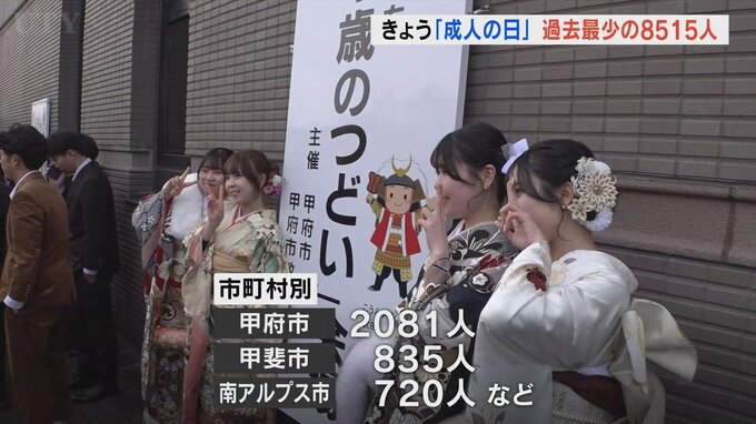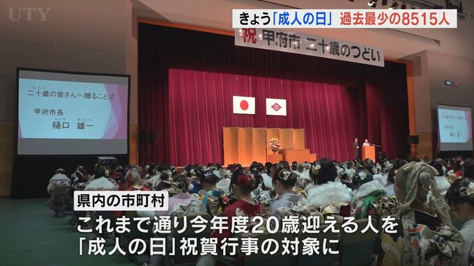 山梨県内で成人の日の祝賀行事の対象になる今年度二十歳になる人は8515人と過去最少を更新しました。