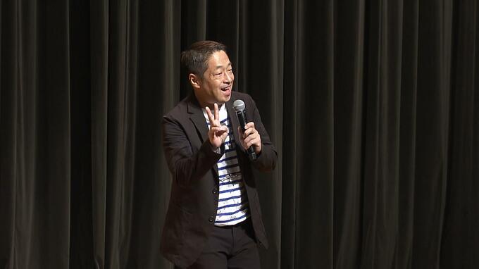 講演では、被災した際に役立つ情報を、笑いを交えて紹介するようにしています。