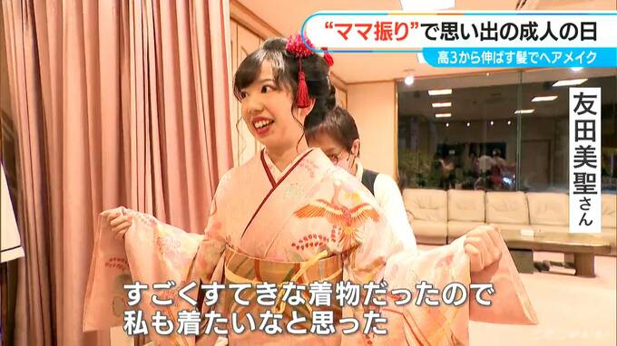 「20歳の時に着ました。成人式の時に。うれしいです。同じもの着ることができて」