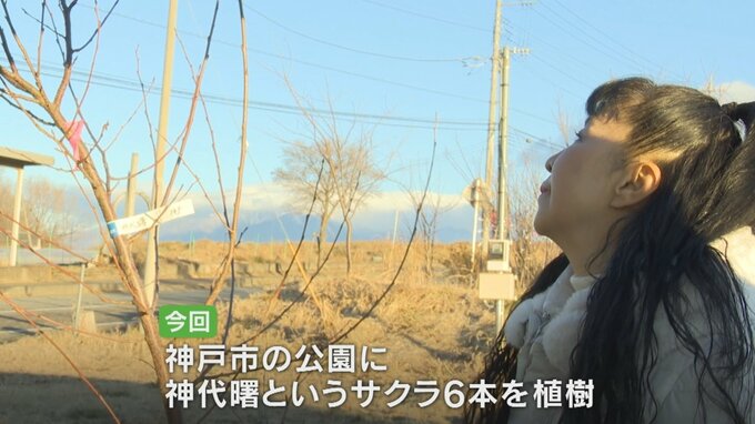 今回は神戸市の公園に北杜市の悠久の郷が用意した「神代曙」という品種6本を植樹することになりました。