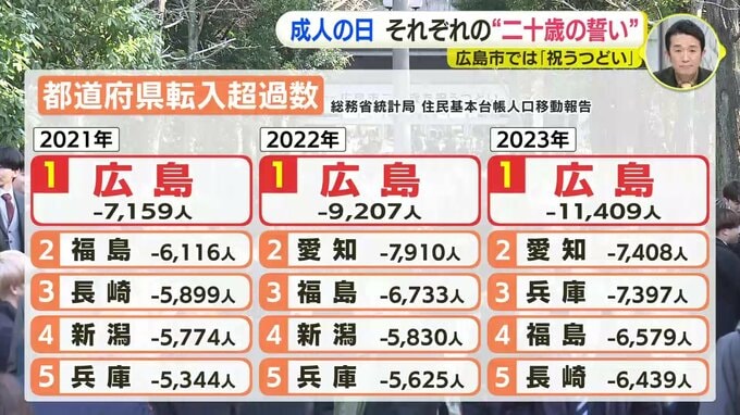 気になるのは、若い世代が広島に残り続けてくれるかどうか…。実行委員長も「残る可能性もありますし、残らない可能性も…」と話します。広島県は転入人口から転出人口を差し引いた「転出超過」が3年連続で全国で最多です。若い世代の県外転出が続けば地域の活力が失われかねません。