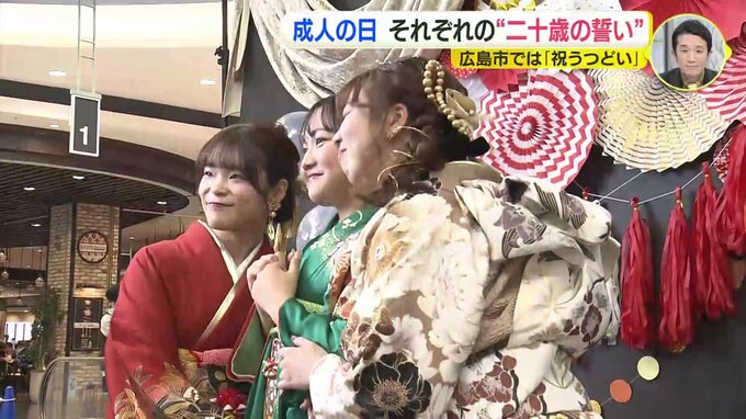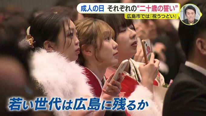 広島市で今年度、はたちを迎えるのはおよそ1万1700人。式典には市内それぞれの区ごとに午前と午後に分かれて参加しました。