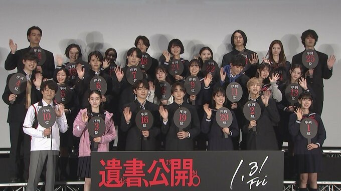 13日、映画『遺書、公開。』の「2年D組全員集合!完成披露舞台挨拶」が行われ、主演の吉野北人さんをはじめ、宮世琉弥さん、志田彩良さん、IMP.の松井奏さん、髙石あかりさん、堀未央奈さん、忍成修吾さんら、25名のキャストが登壇しました。
