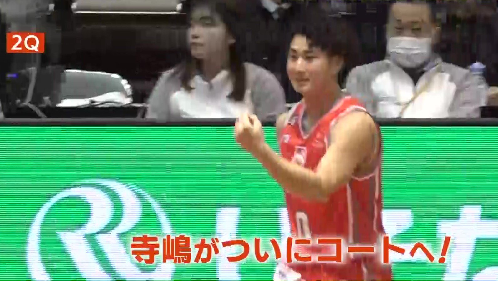 寺嶋は、第2クォーターについにコートに立ち、大歓声に迎えられます。