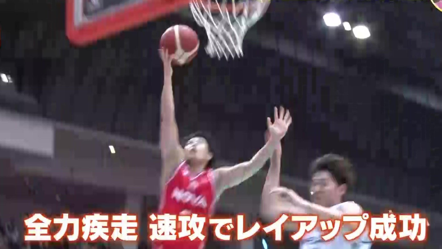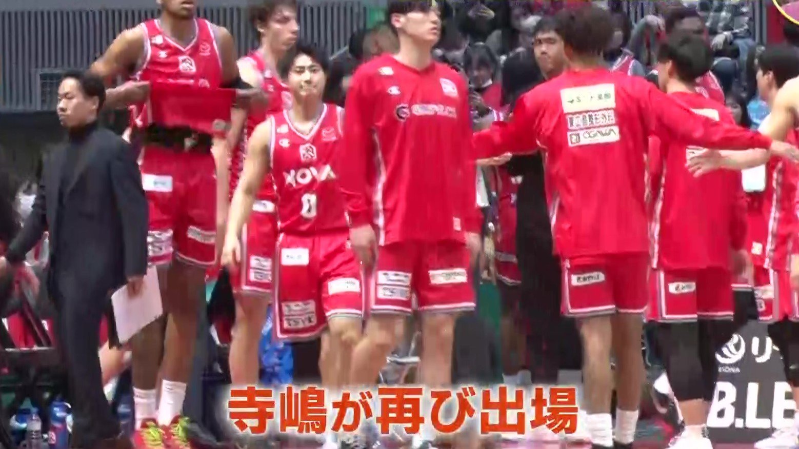 ここで再び寺嶋が出場、みずからの判断でポイントガードの位置でボールを運ぶと、けがの影響を感じさせない全力疾走でレイアップを決めます。