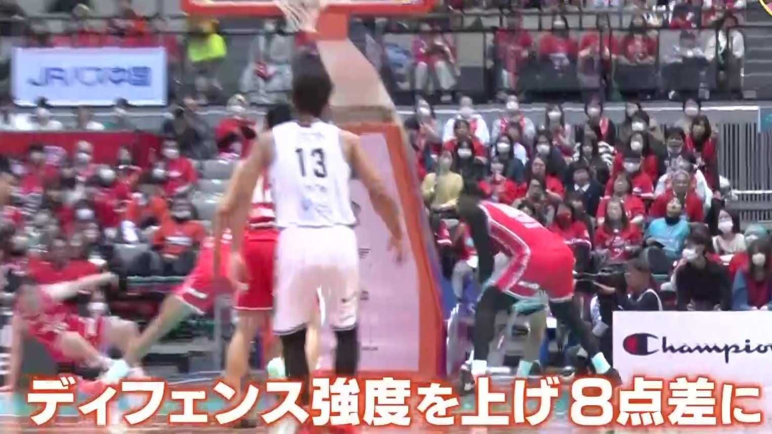 後半、ディフェンスの強度を上げた広島が8点差まで追い上げて、第4クォーターへ。