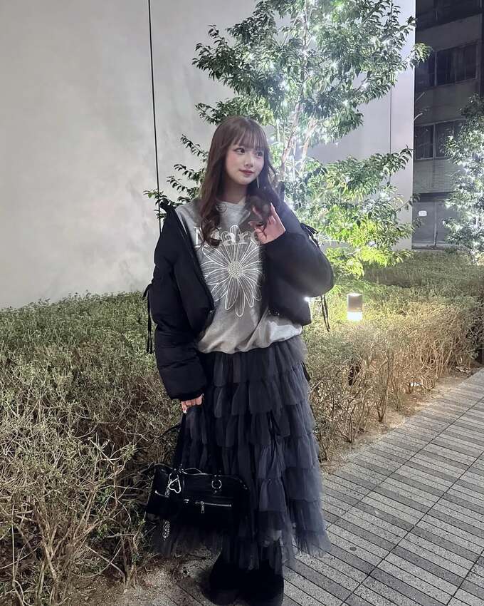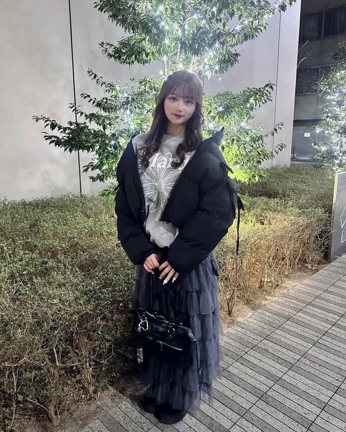 投稿された写真では、黒のジャケット、黒のバッグ、グレーのトップス、ダークグレーのスカートをあわせたコーデで、希空さんが微笑む様子などが見て取れます。